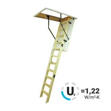 Лестница складная трехсекционная. Рабочая поверхность полностью выполнена из металла и покрашена порошковой краской. Термоизоляционная крышка типа "сэндвич", толщиной 86 мм, утеплена пенопластом, облицована с двух сторон ДCП белого цвета.