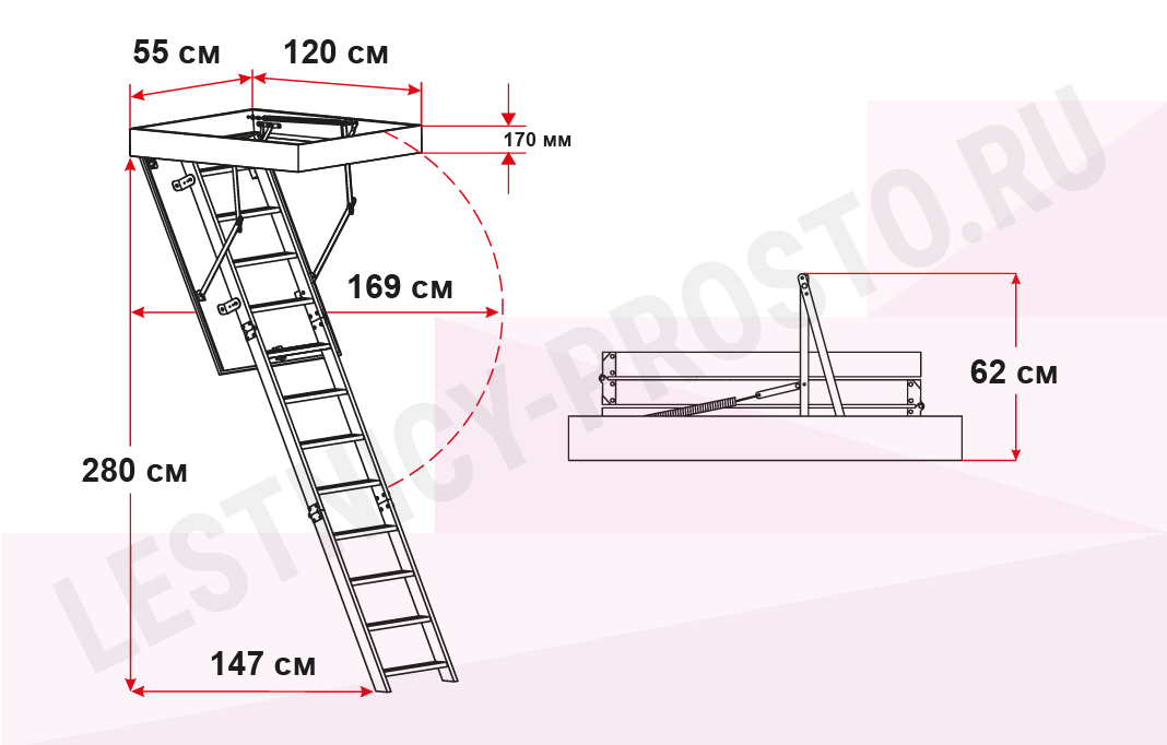 Чердачная лестница OMAN POLAR 55×120 см, h-280 см