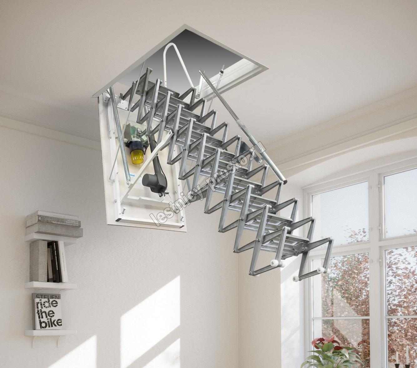 Лестница на мансарду или чердак автоматическая с пультом дистанционного управления