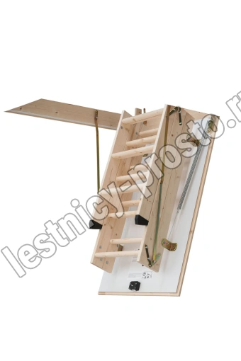 PROF 36 - трехсекционная утепленная лестница из скандинавской медленнорастущей ели, отличающейся повышенной прочностью, ступени из сосны, имеют антискользящие насечки.