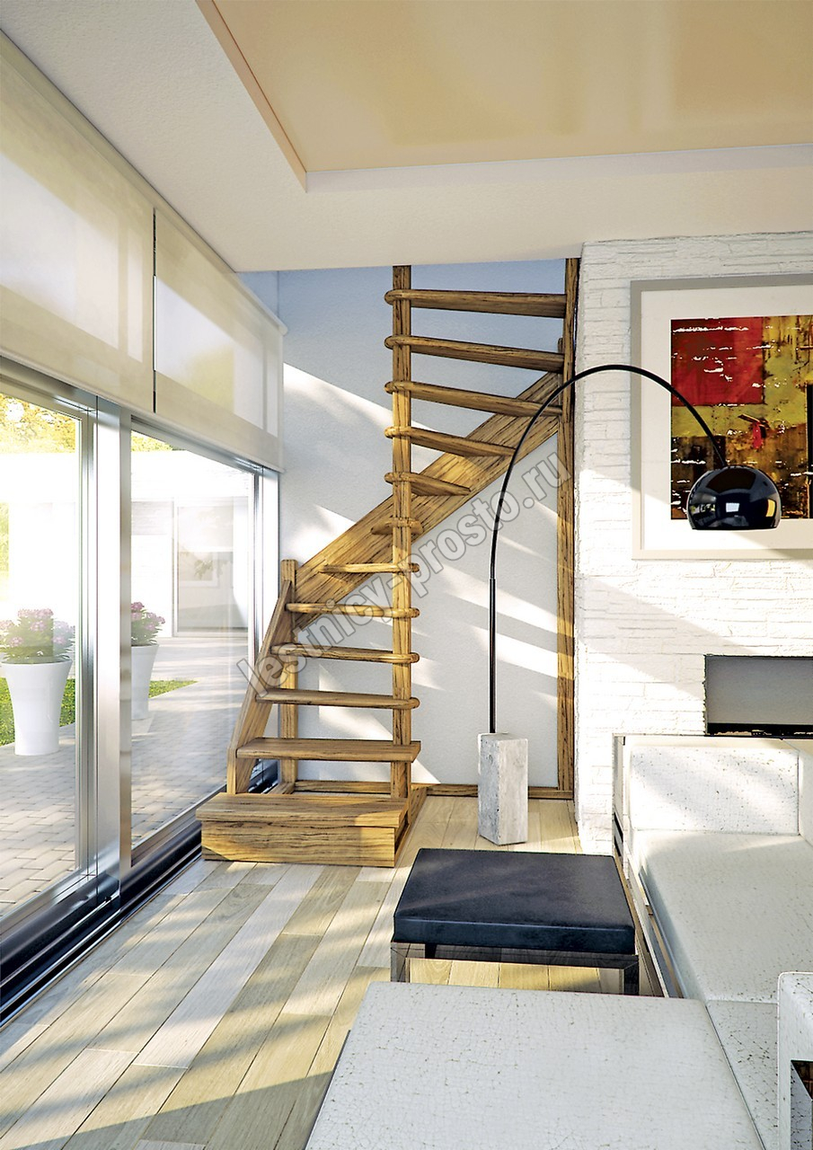 Деревянная межэтажная лестница ЛЕС-01 2525-2720 проем 1640-900, Лиственница