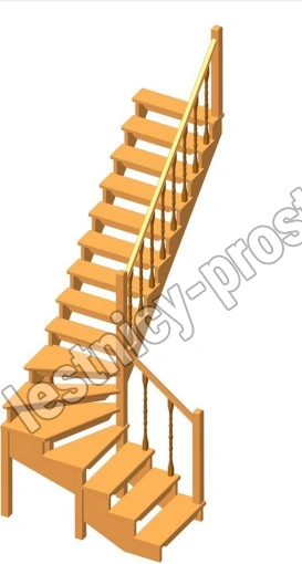 Деревянная межэтажная лестница ЛЕС-09 3310 проем 2800-900, Лиственница
