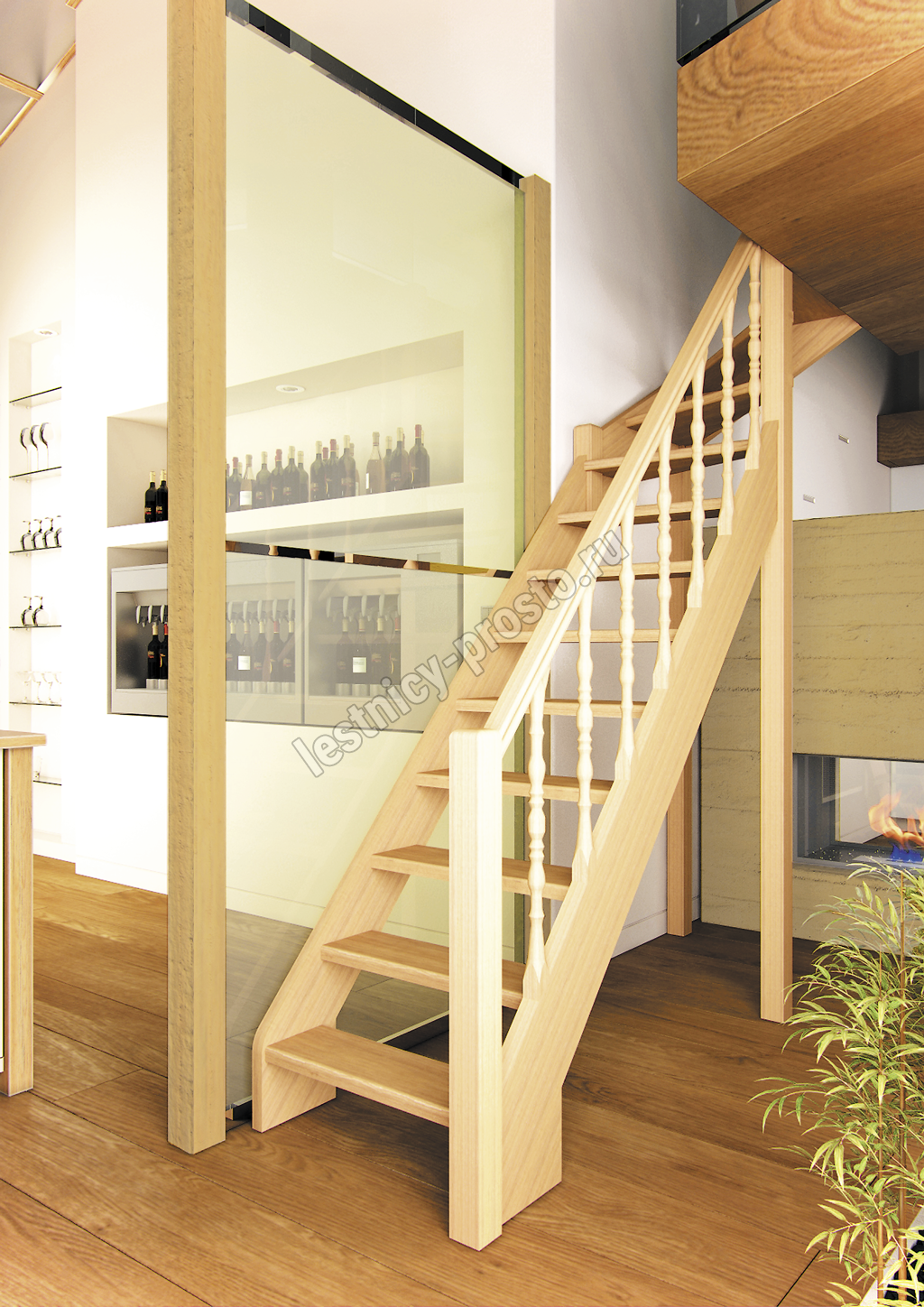 Деревянная межэтажная лестница Лес-715, Лиственница