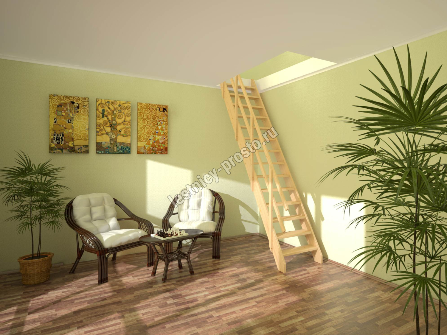 Базовый комплект включает в себя деревянные элементы лестницы без какого-либо покрытия. Вы можете заказать у нас покраску лестницы в цвета, отвечающие особенностям вашего помещения.
