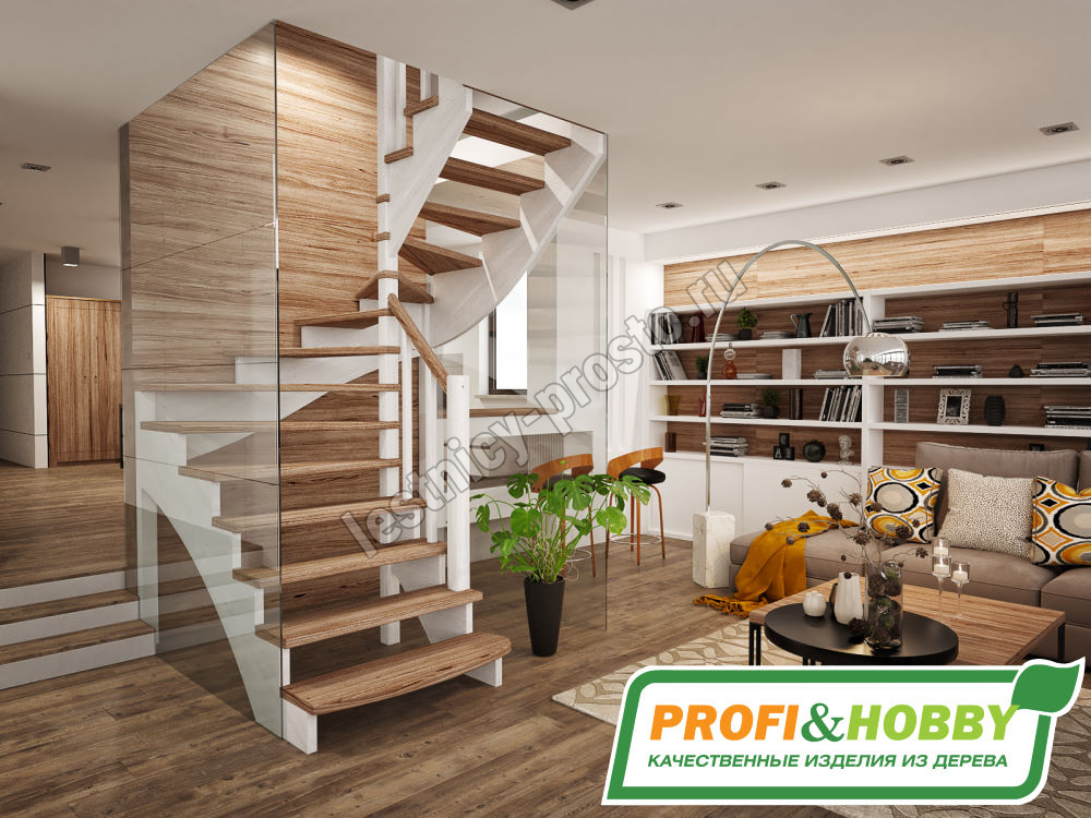 Лестница из сосны К-103М с подступёнками