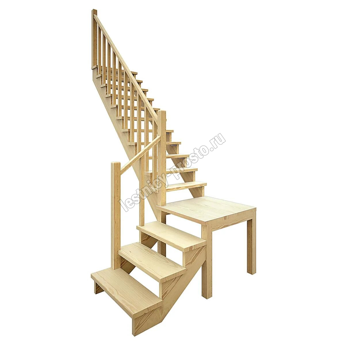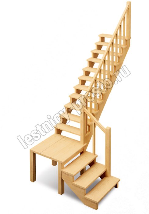| Деревянная межэтажная лестница ЛЕС-08, Сосна с подступенкой |