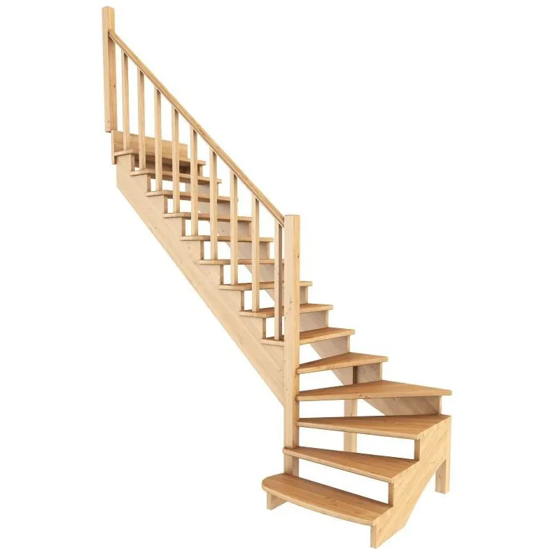 Традиционная лестница, простая в сборке. В процессе установки этой универсальной модели, ограждение можно смонтировать с необходимой стороны (слева или справа).