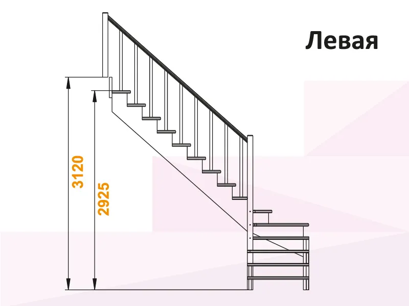 Поворот лестницы на 90 градусов выполнен через 4 забежные ступени. Первая (снизу) ступень - пригласительная, имеет скругленные внешние углы.
