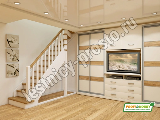 Ступени и поручень лестницы изготовлены из бука, остальные элементы из сосны.