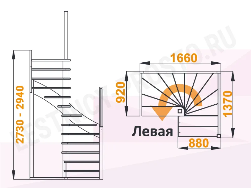 Схема лестинцы К-005М/1 с поворотом налево