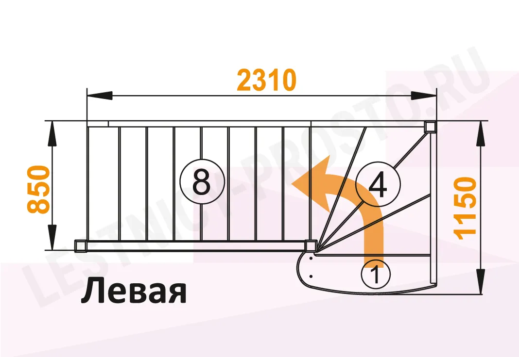 Схема лестницы ЛС-07М/3 с поворотом налево