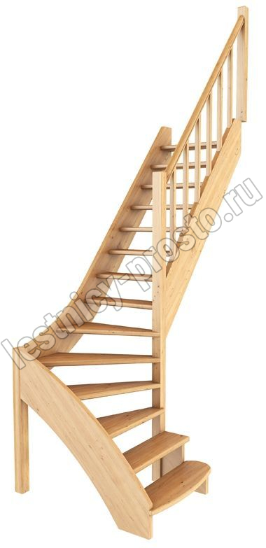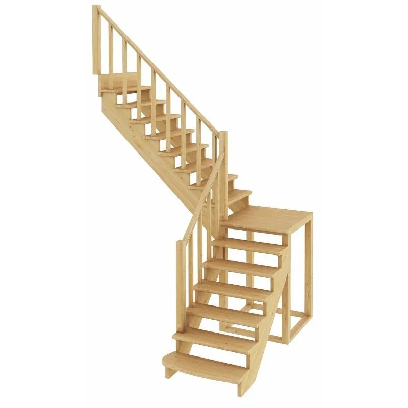 Ступени и поручень лестницы изготовлены из дуба, остальные элементы из сосны. Возможно изготовление данной модели полностью из дуба. Базовый комплект включает в себя деревянные элементы лестницы и ограждения без какого-либо покрытия.