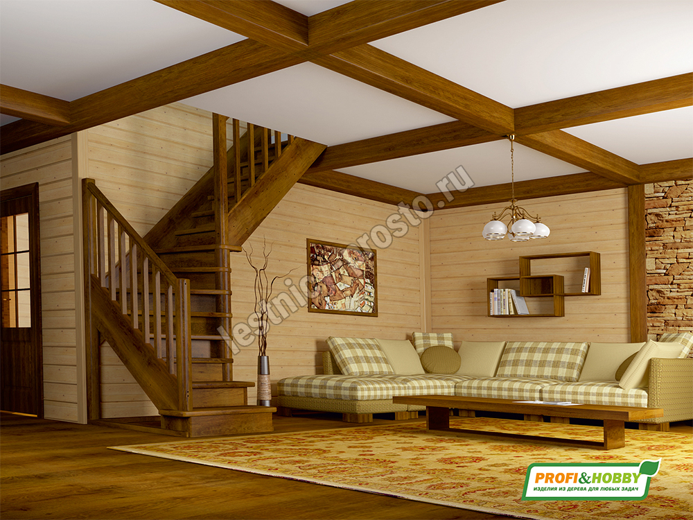 Ступени и поручень лестницы изготовлены из дуба, остальные элементы из сосны.