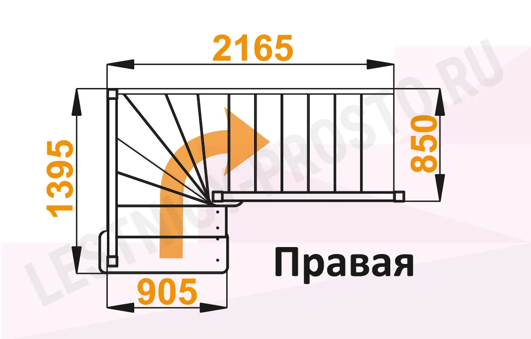 Схема лестницы ЛС-225М с поворотом направо