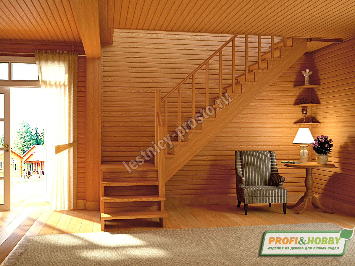 Лестница из сосны К-002М/1 с подступёнками