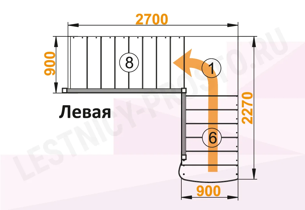 Схема лестницы К-002М/4 с поворотом налево