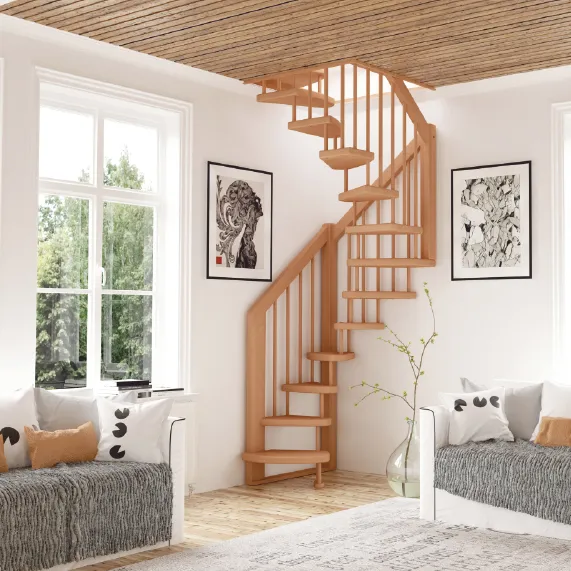 Базовый комплект включает в себя деревянные элементы лестницы и ограждения без какого-либо покрытия. Лестница поставляется в разобранном виде.