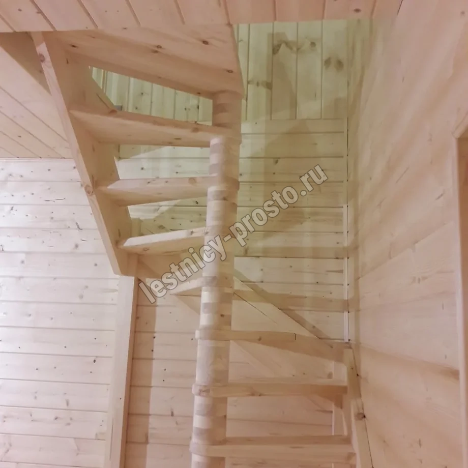 Базовый комплект включает в себя деревянные элементы лестницы и ограждения без какого-либо покрытия.