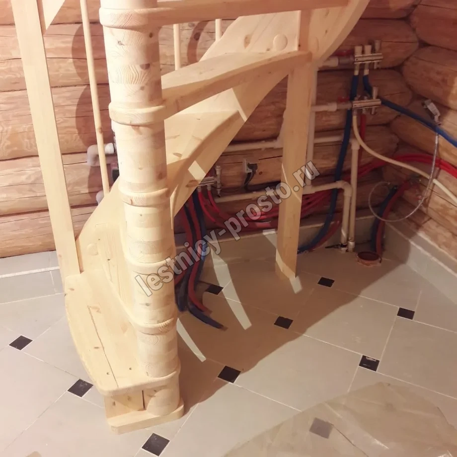 Базовый комплект включает в себя деревянные элементы лестницы и ограждения без какого-либо покрытия.