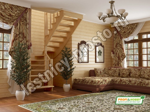 Ступени и поручень изготовлены из ясеня, остальные элементы из сосны. Возможно изготовление данной модели полностью из ясеня.