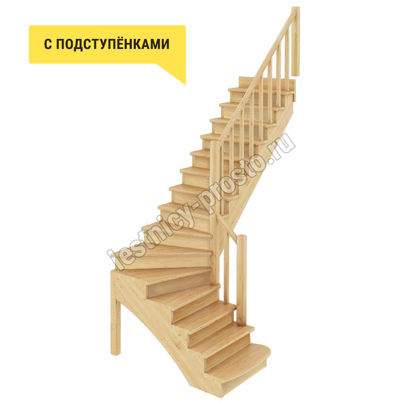 Базовый комплект включает в себя деревянные элементы лестницы с подступёнками и ограждение без какого-либо покрытия.