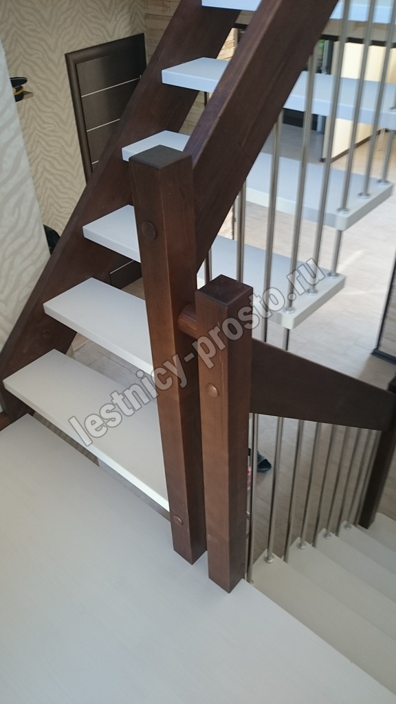 Надёжная современная лестница выполнена по немецкой технологии. Стоимость указана для лестницы с ограждением (с одной стороны); Поставляется в разобранном виде, в комплекте необходимый крепёж; Лестницу можно собрать самостоятельно; Так же, вы можете заказать услугу монтажа нашими специалистами; 4 вида породы дерева для изготовления лестницы: сосна, бук, ясень, дуб; возможна комбинированная лестница: из сосны (ступени бук, ясень, дуб); Деревянные элементы без какого-либо покрытия, отшлифованы, готовы к покраске. За дополнительную плату, вы можете изменить любые параметры, а именно: увеличить глубину ступени; увеличить ширину марша до 900 мм. и выше; заказать подступенки к лестнице; заказать отделку перекрытия (между 1-м и 2-м этажами); изготовить дополнительный промежуточный марш; заказать ограждение 2-го этажа; покраска в любой цвет или несколько цветов или покрытие защитными средствами; дополнение балясины из нержавеющей стали деревянными элементами; покраска балясин из нержавеющей стали порошковой краской в цвет RAL.