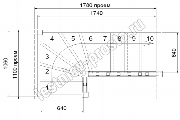 Высота лестницы 2300 мм