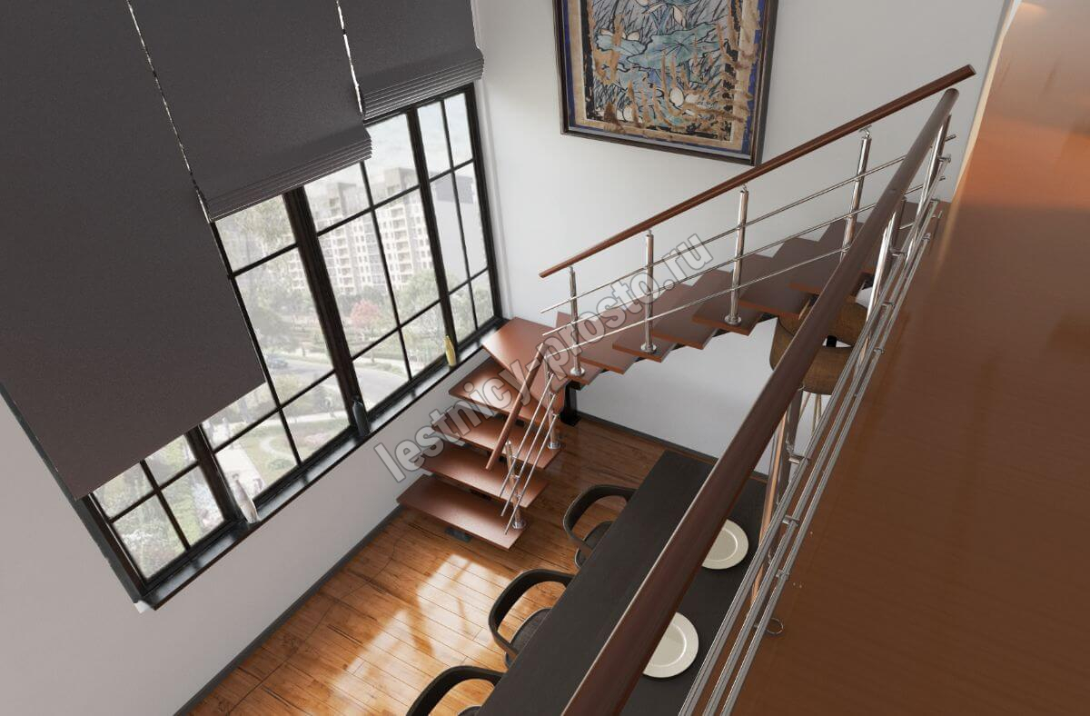 Комплект ограждений для Г-образной лестницы PROSTO MONO из 13 ступеней.