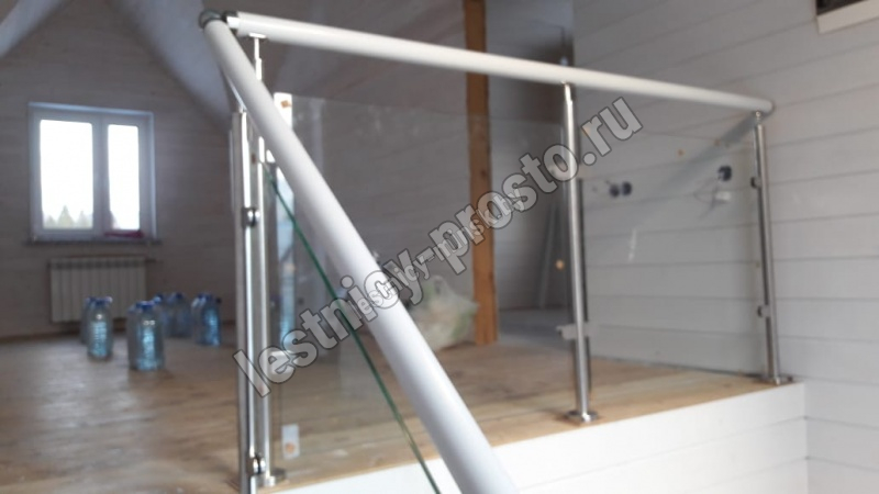 В комплекте: стойки из нержавеющей стали диаметром 38 мм, поручень из бука без покрытия диаметром 50 мм, стекло.<br>