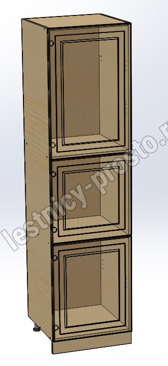 Пенал 2220 х 600 х 560 филенка, 3 двери (без полок), сосна, бесцветный акриловый лак
