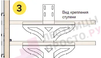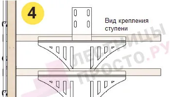 При заказе вы можете выбрать любой вид крепления ступеней из показанных ниже в блоке "Чертежи и схемы" (просто оформите заказ, мы позвоним вам для согласования заказа и спросим номер необходимого крепления) .