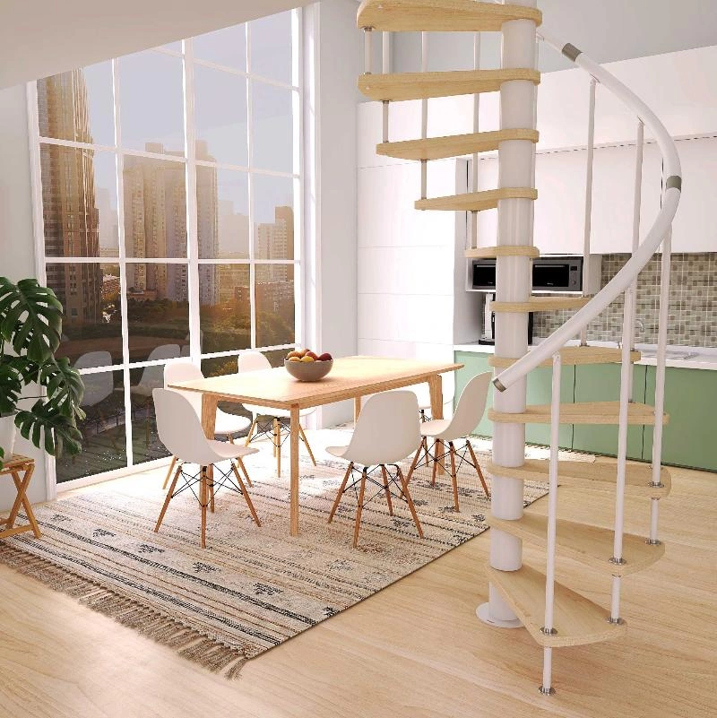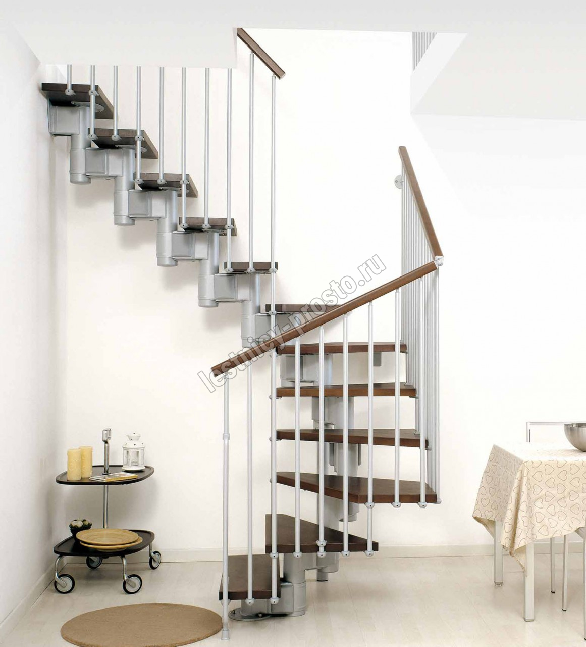 При монтаже этой лестницы, возможно регулировать высоту и глубину шага, таким образом можно получить лестницу под высоты этажа в диапазоне 2250 - 3030 мм, кроме того, установив дополнительный комплект увеличения высоты, можно поднять высоту лестницы до 3730 мм. Ширина проступи регулируется при монтаже в пределах 180 - 220 мм. Каркас и стойки ограждения выполнены из пластифицированного металла. Уникальный модульный каркас позволяет собрать лестницу необходимой формы.