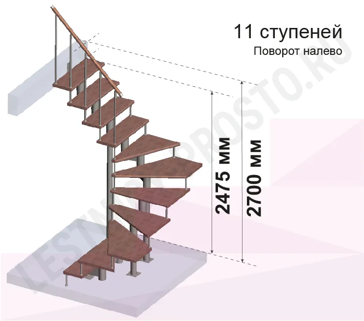 Высота лестницы 2475 - 2700 (11 ступеней) мм