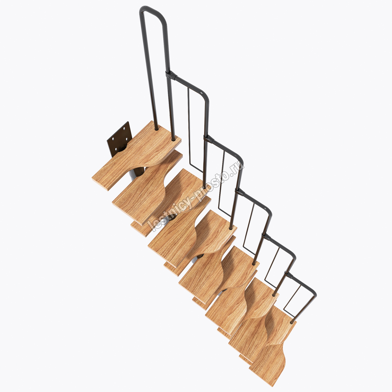 Лестница Prosto Urban Black гусиный шаг 600 мм, h198-288 см (11 ступеней), дуб