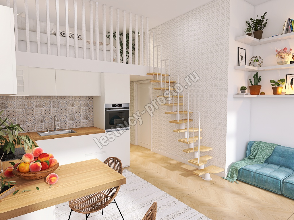 Лестница Prosto Urban White гусиный шаг 600 мм, h180-264 см (10 ступеней), берёза мультиплекс