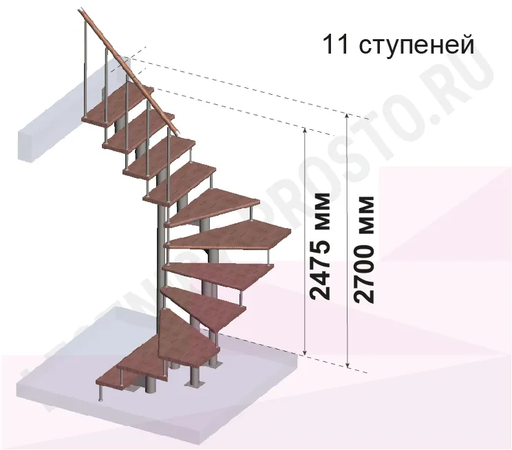 Модульная лестница PROSTO MODULE П-образная/ h270 см