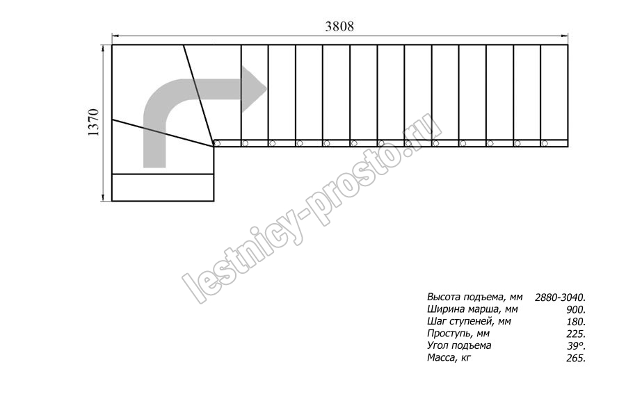 Модульная лестница Фаворит 180 2880-3040, Серый, Сосна, Нержавеющая сталь