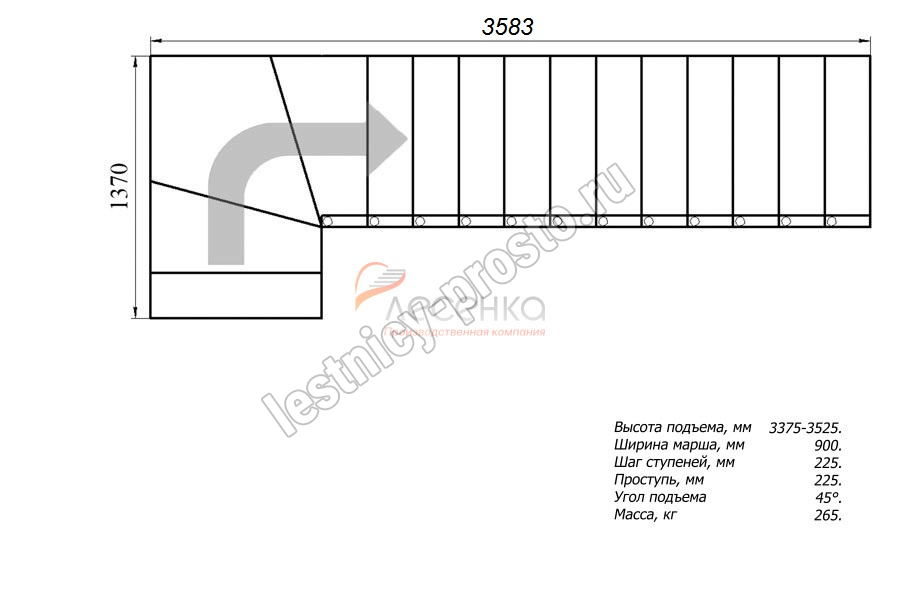 Высота лестницы 3375 - 3525 мм