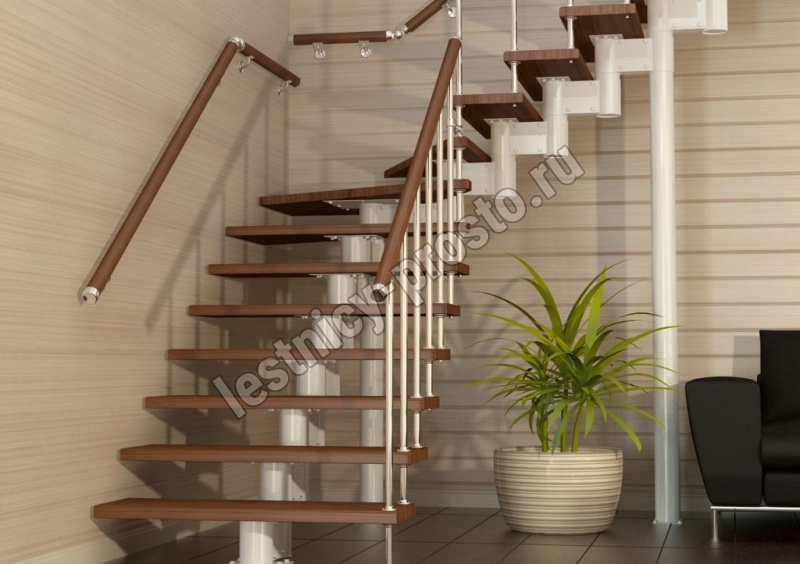 Каркас лестницы представляет собой набор модулей, которые комплектуются уже готовыми к монтажу.