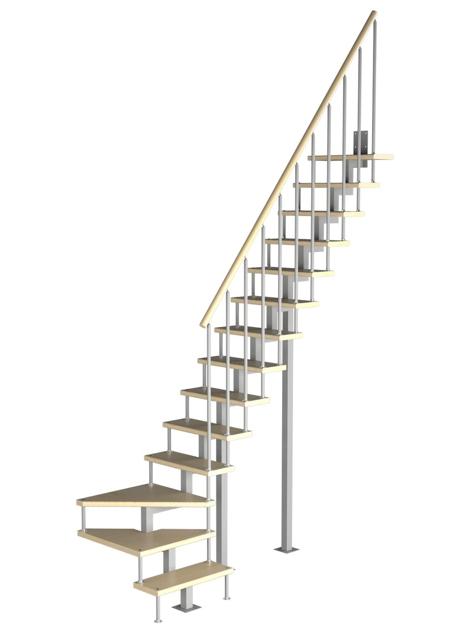 Модульная лестница Стандарт 2925-3055, Серый, Лиственница, Нержавеющая сталь