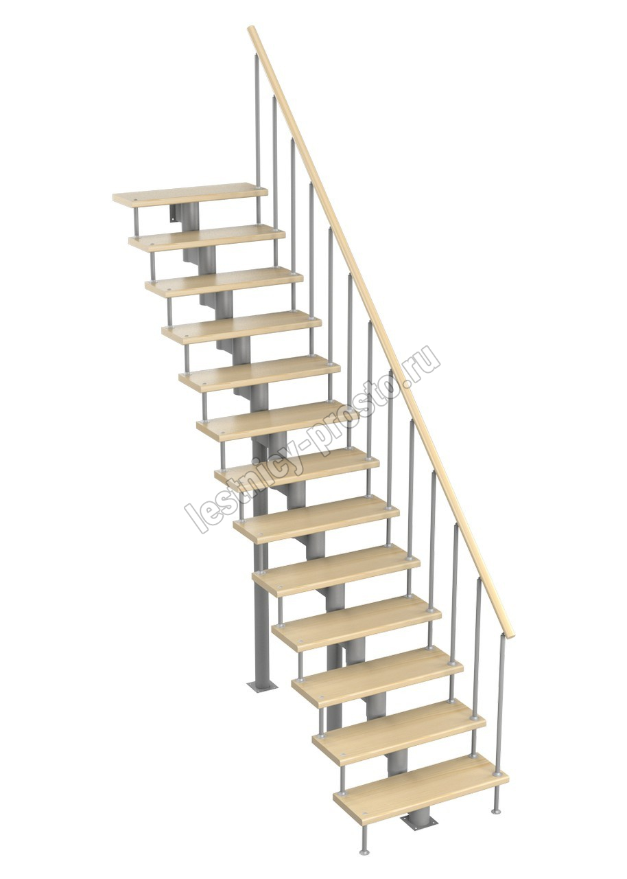 Модульная лестница Стандарт 3150-3290, Серый, Лиственница, Нержавеющая сталь