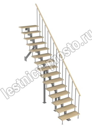 Модульная лестница Стандарт 3375-3525, Серый, Сосна, Нержавеющая сталь
