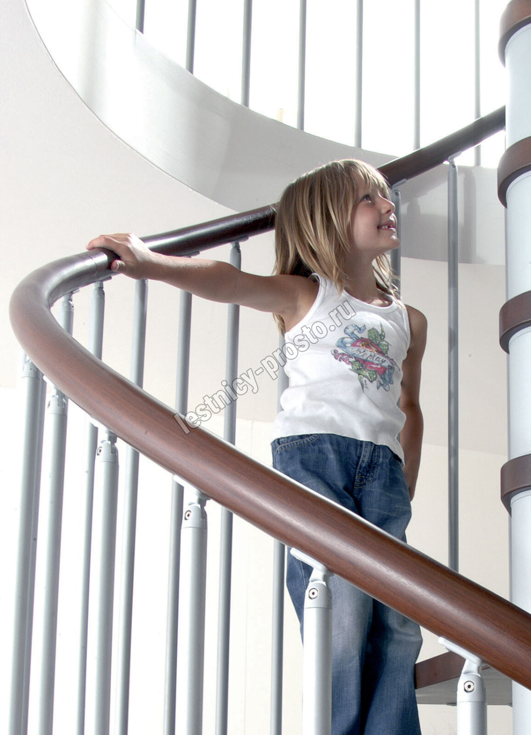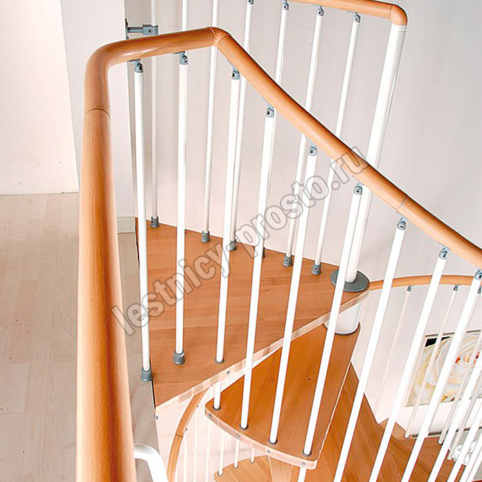 Перила состоят из стальных балясин, окрашенных в черный (RAL 9017), белый (RAL 9010) или серый (RAL 9006). Концы черные для черной лестницы и серые для серой и белой лестниц.