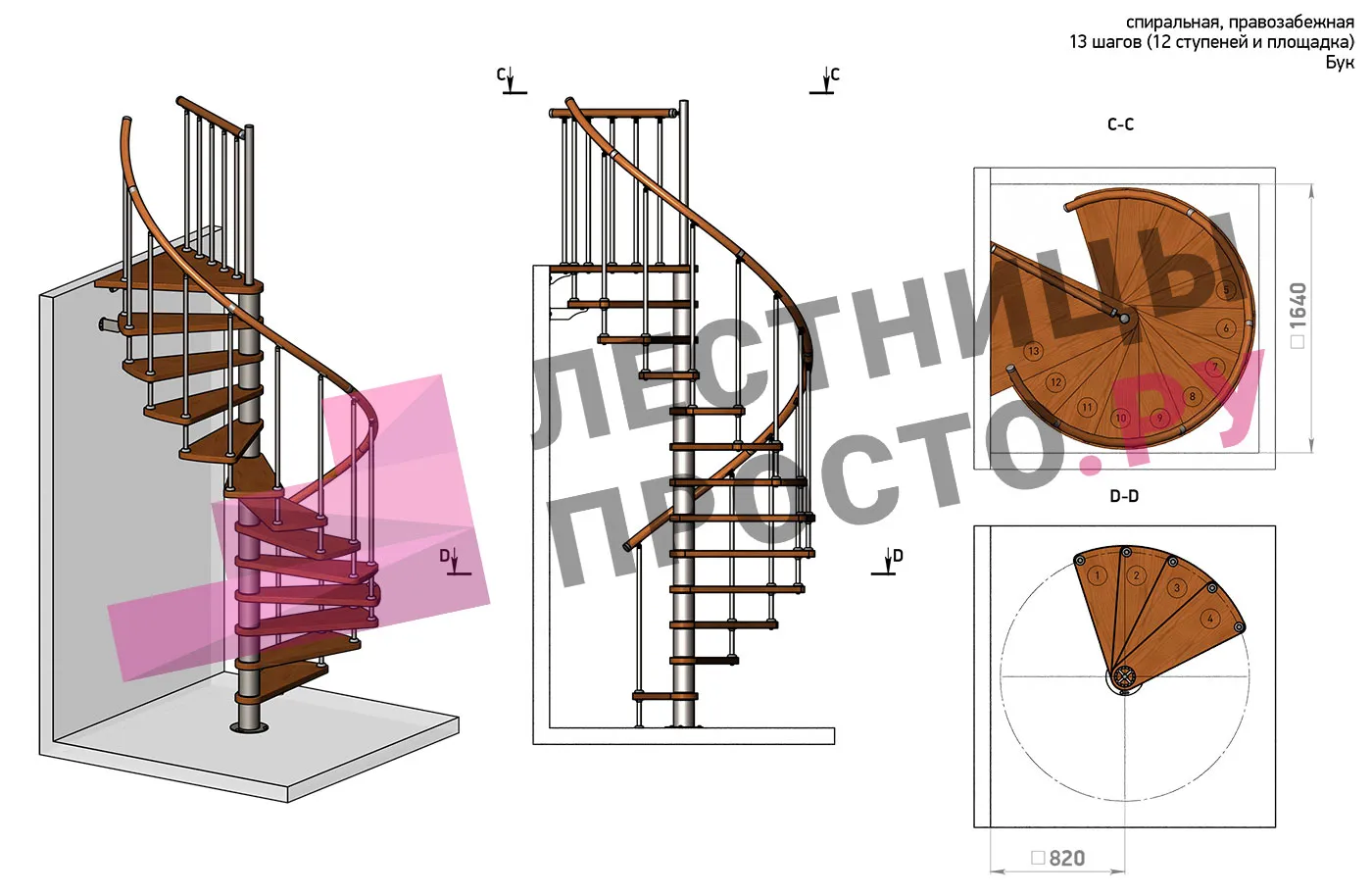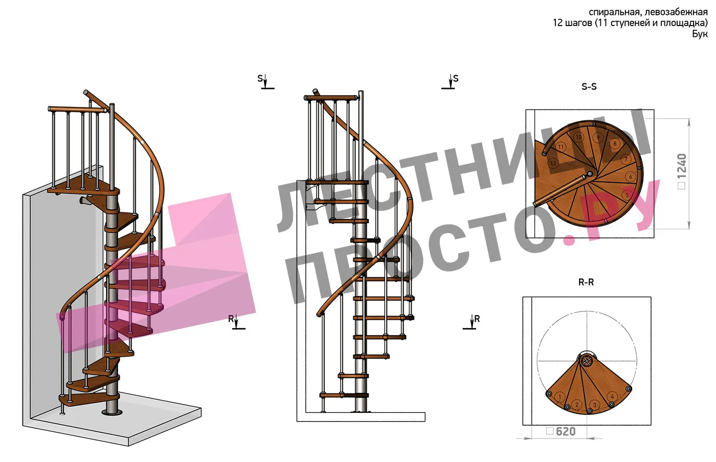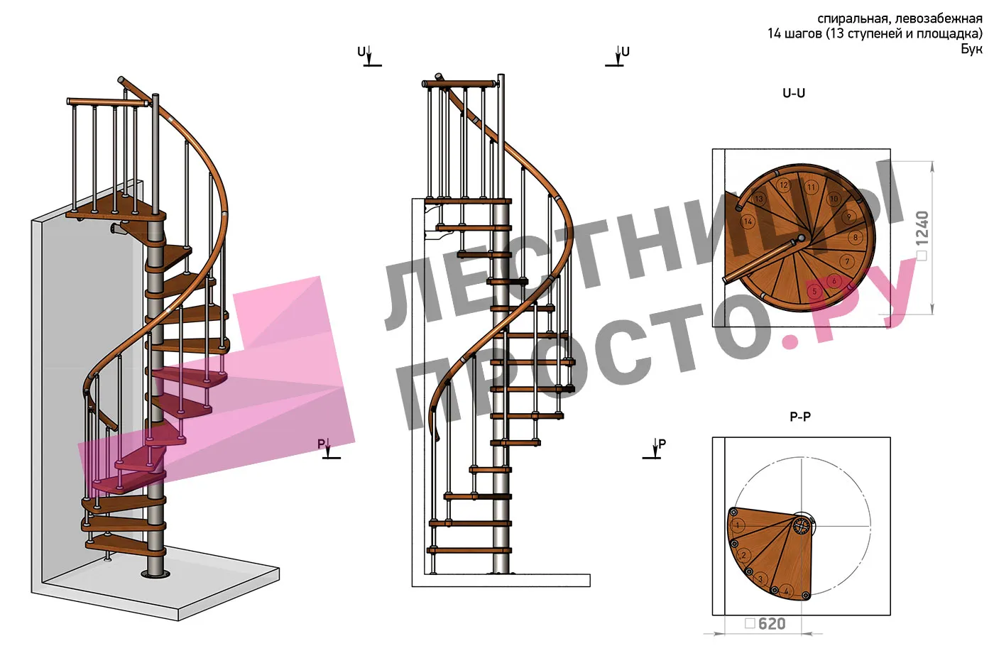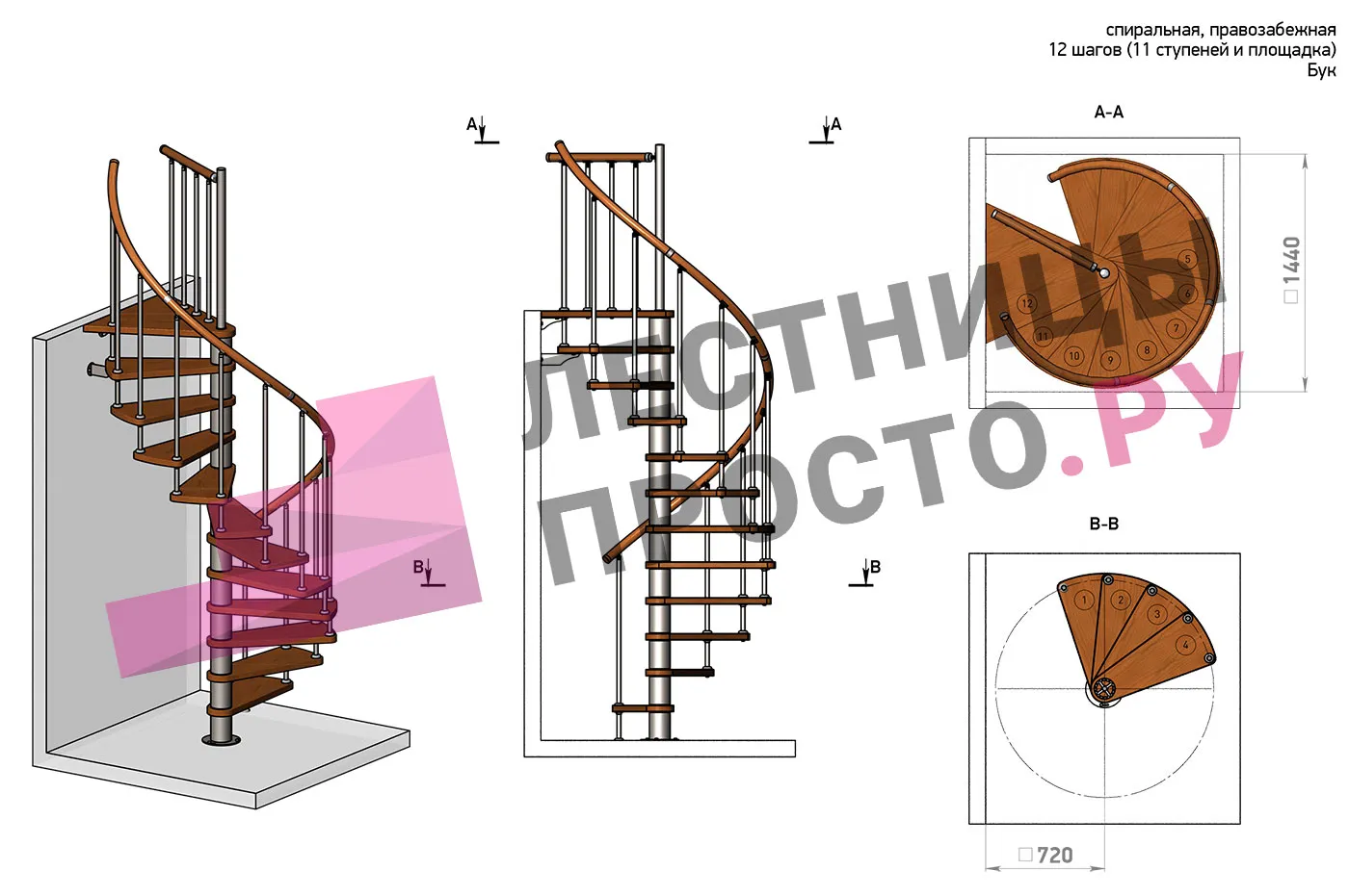 Решение об ориентации поворота принимается при сборке лестницы (комплект собирается и в правозабежную, и в левозабежную лестницу).