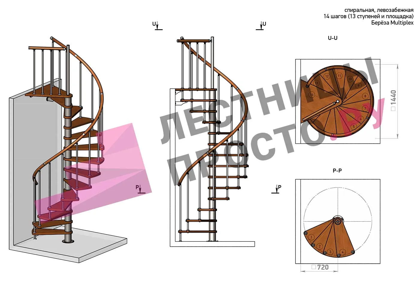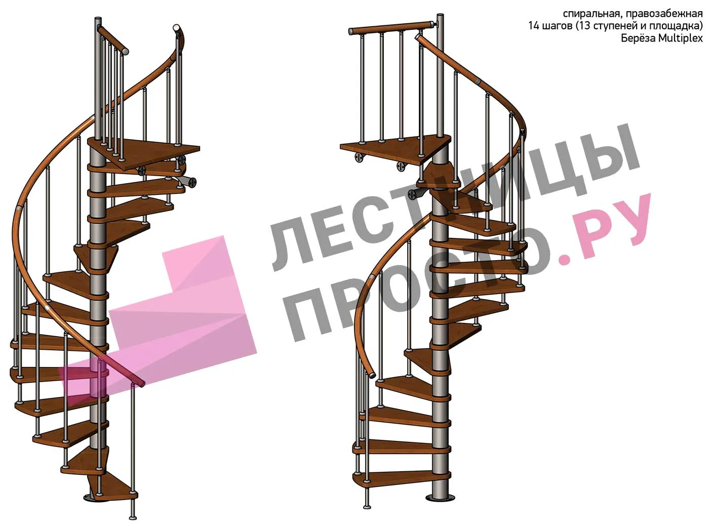 Винтовая лестница Prosto Spiral White D140см, h296.9-338.1 см