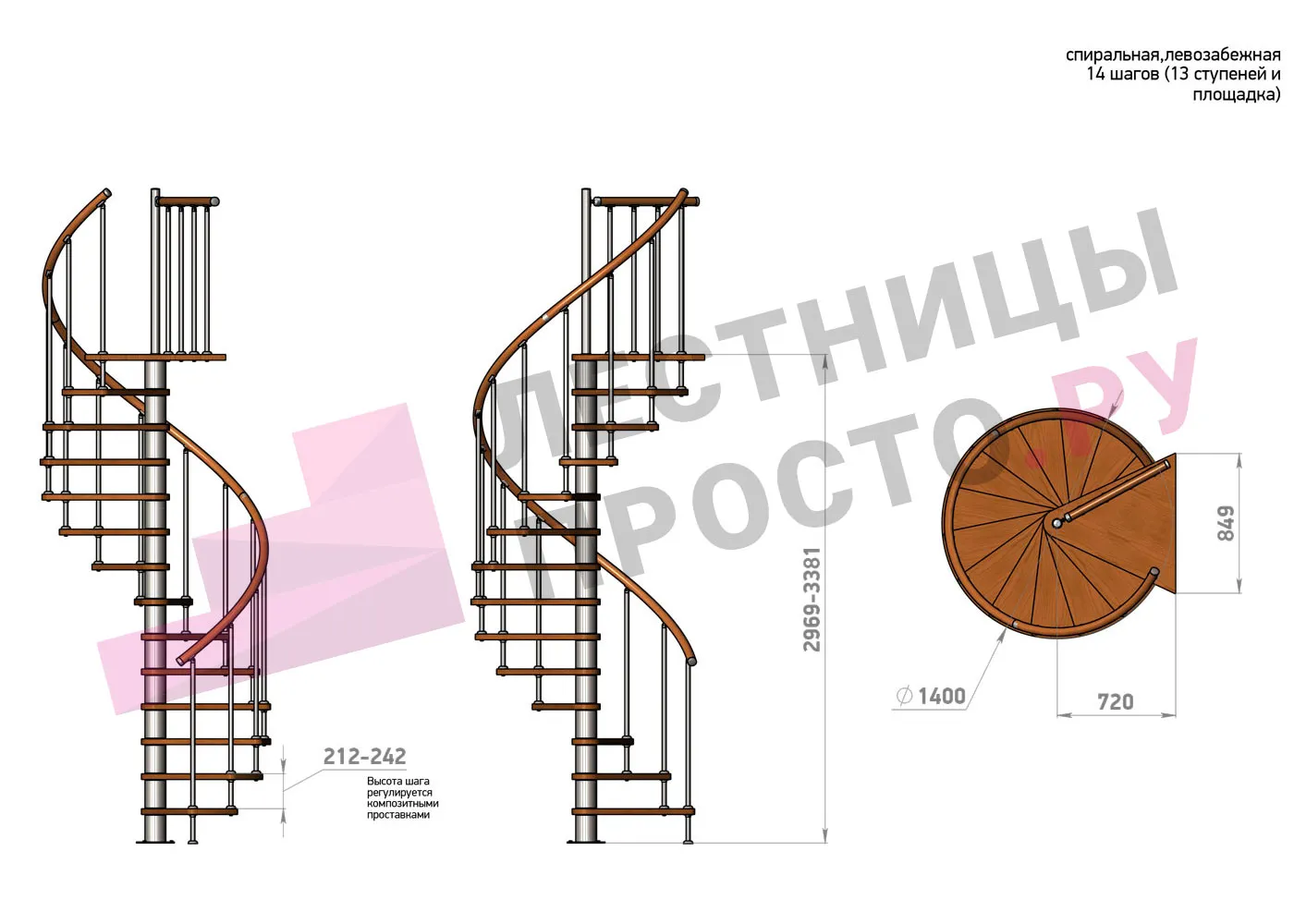 Винтовая лестница Prosto Spiral White/Высота 2545 - 2898 мм