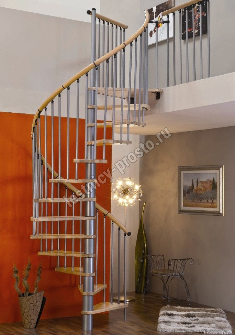 | Винтовая лестница SPIRAL DECOR d140 см, серебро, бук лакированный |