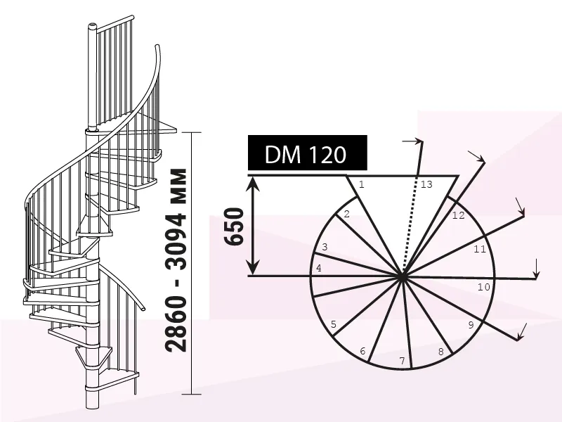 Высота лестницы 2860 - 3090 мм