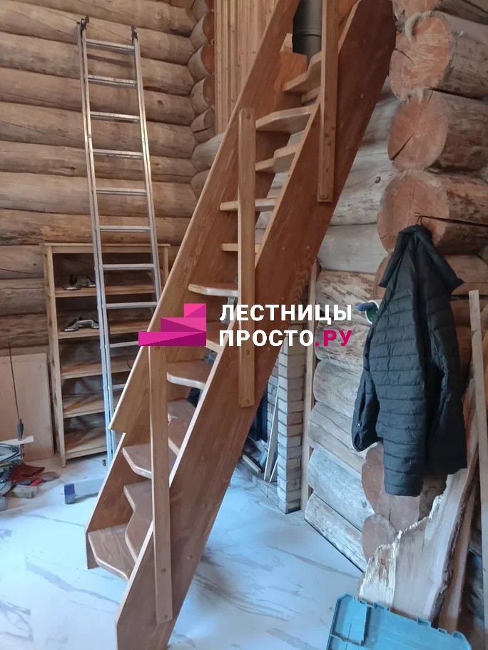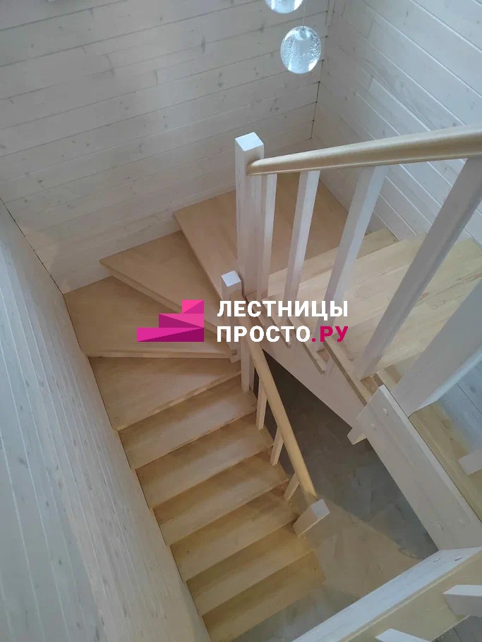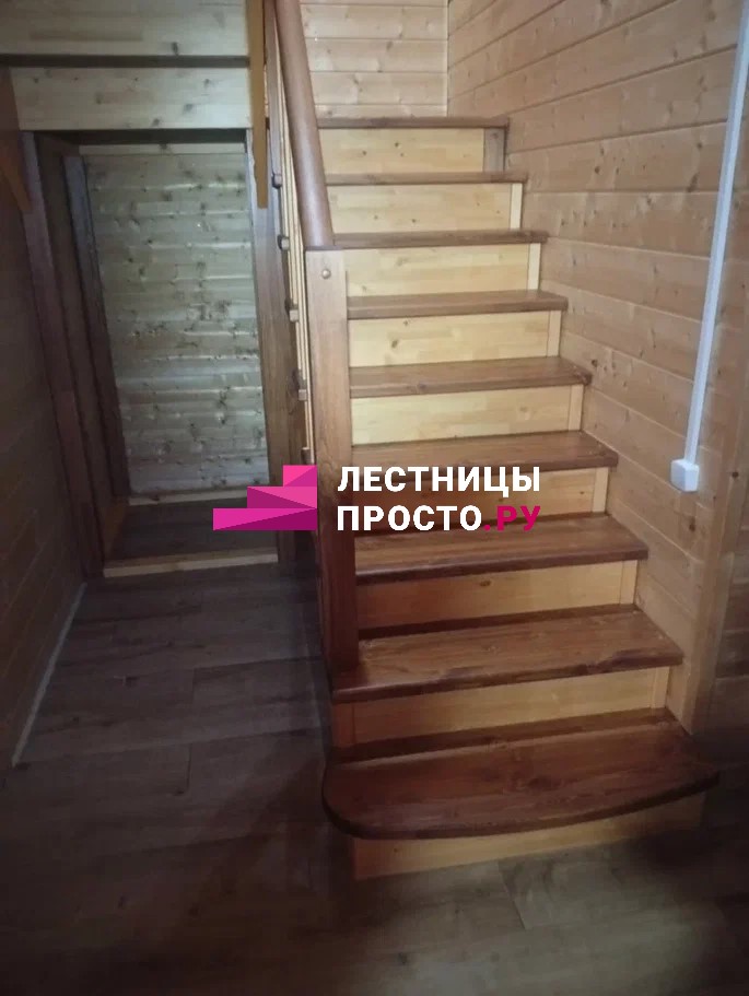Лестница из сосны с поворотом без покраски