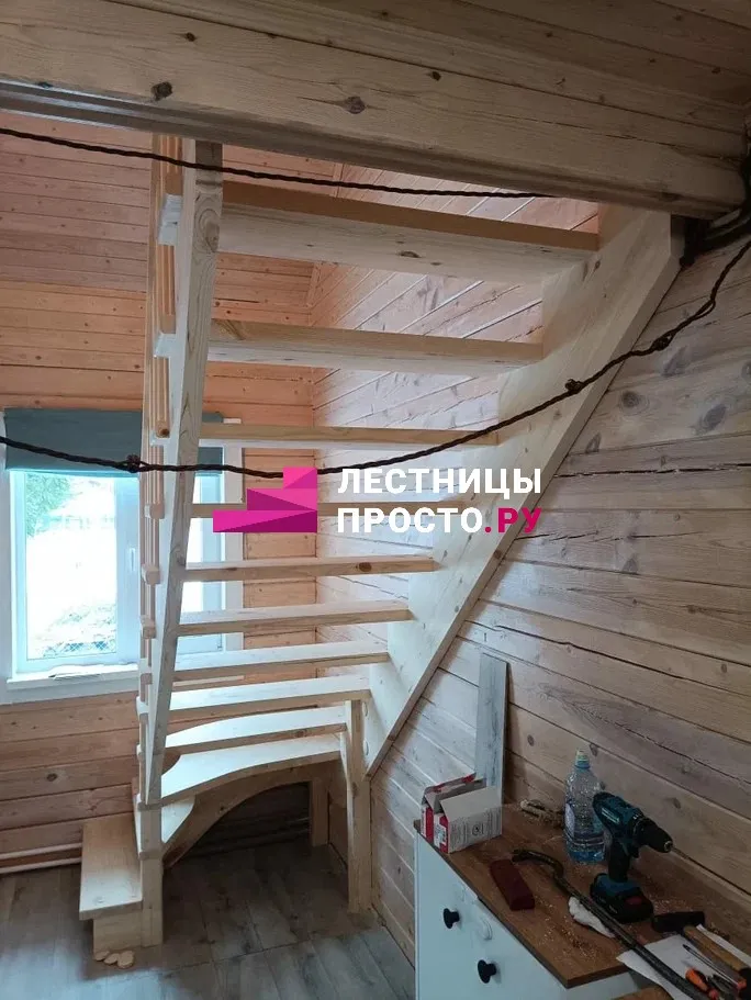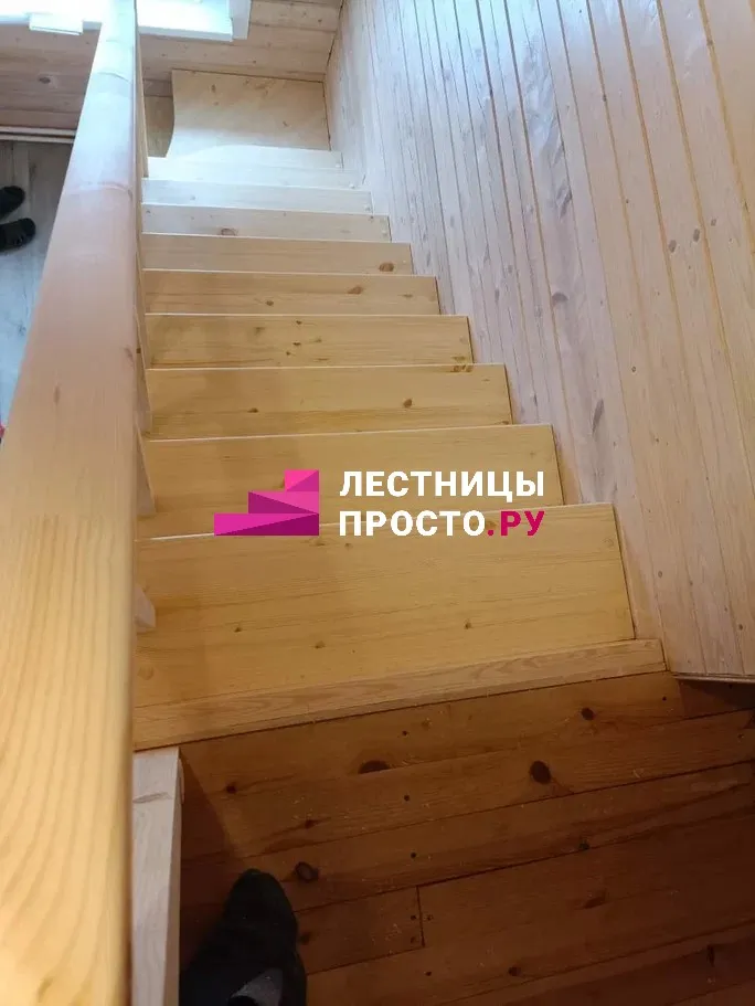 Лестница из сосны с поворотом без покраски